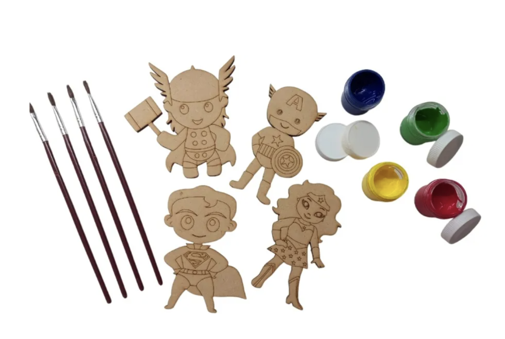 - Una figura de madera + un pincelito + una planchita de acuarelas: No te asustes! Si mirás estas cositas no son caras! Si el cumple es de una temática, podés elegir una figura de madera relacionada. Esas mandalas a hacer a una maderera o compralas por internet.